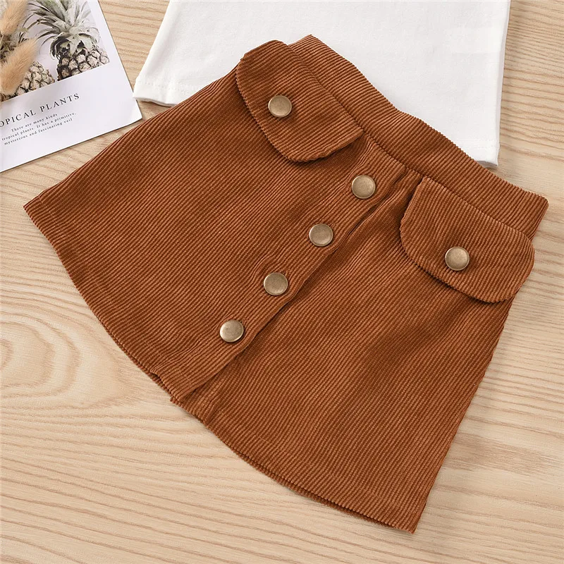 This tee with a short fur sleeve outfit is the perfect basic to have in your little one's wardrobe. It has a fur sleeve and makes this tee looks so adorable.  In a feminine  A-line silhouette, this classic style features a high waist, two front pockets and has buttons down the front for a '70s vibe. It looks great with boots in the cooler months and sandals when it's warm.