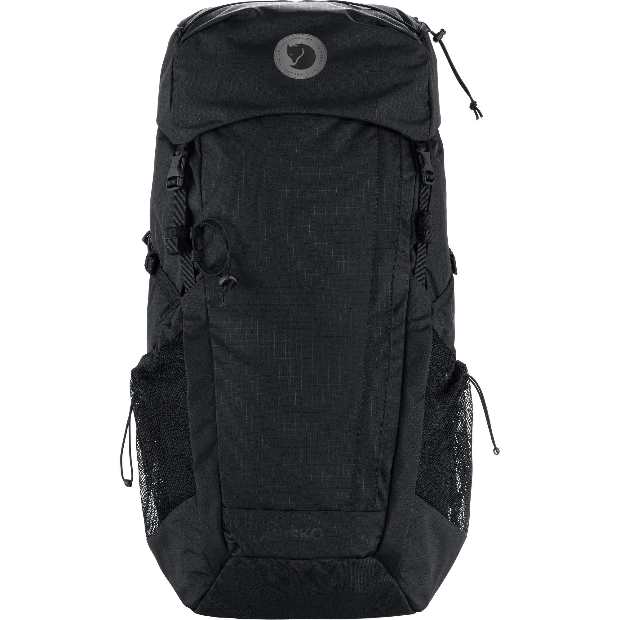 Abisko Hike 35 is a versatile backpack perfect for cabin-to-cabin hikes and lightweight trekking. Made from 100% recycled polyamide, this backpack has an adjustable back length system with ventilating air mesh on the back panel, shoulder straps, and hip belt. It has a top-loaded main compartment with front zipper and the top-lid with bungy cord has two zippered pockets. There are two sleeve pockets inside the main compartment and a zippered inside pocket that is easily accessed from the front opening and top. The two oversized side pockets are great for carrying bottles and there are also two pockets on the supportive hip belt. Attachment on the front of the backpack for a trekking pole or ice axe. Hydration system compatible. Rain cover included. Article number: F27224 Gender: Unisex Family: Abisko Activity: Trekking Environmental info: Produced without PFAS, Recycled polyamide Features: Lightweight Product Features