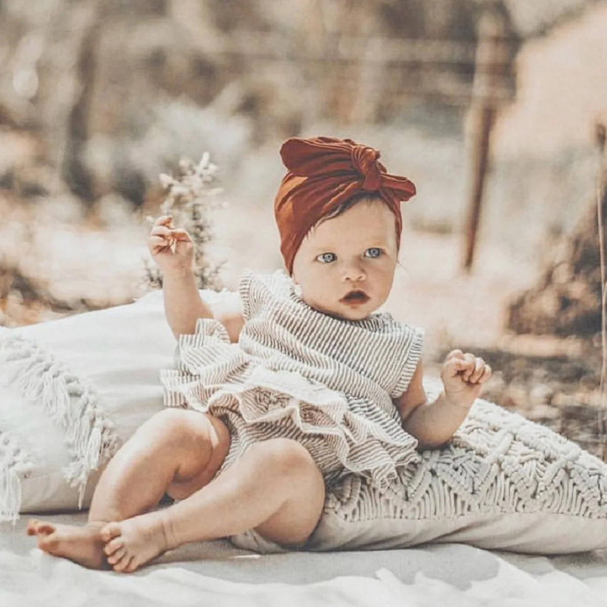 Our rompers are made of cotton blend. The material is soft, breathable linen fabric and makes your baby feel comfortable.