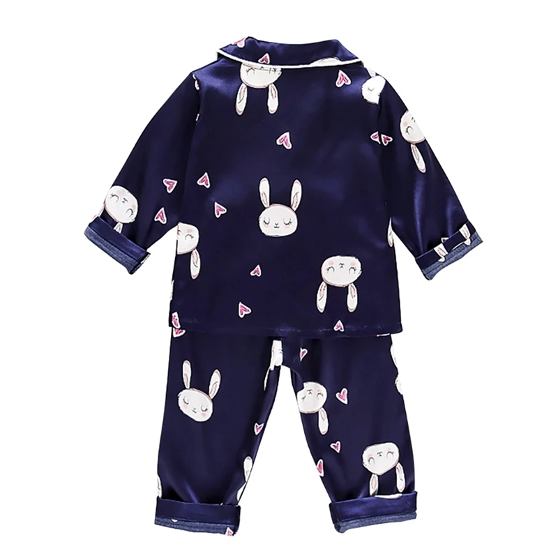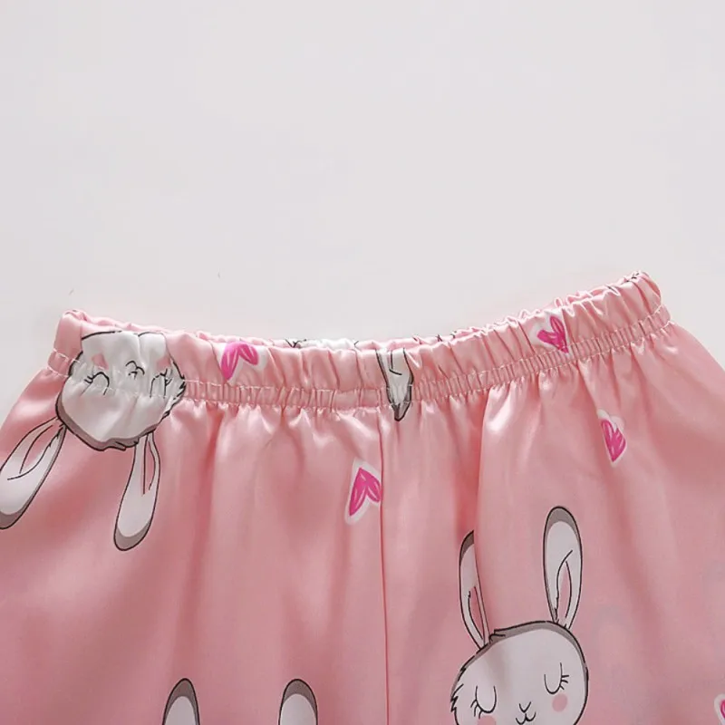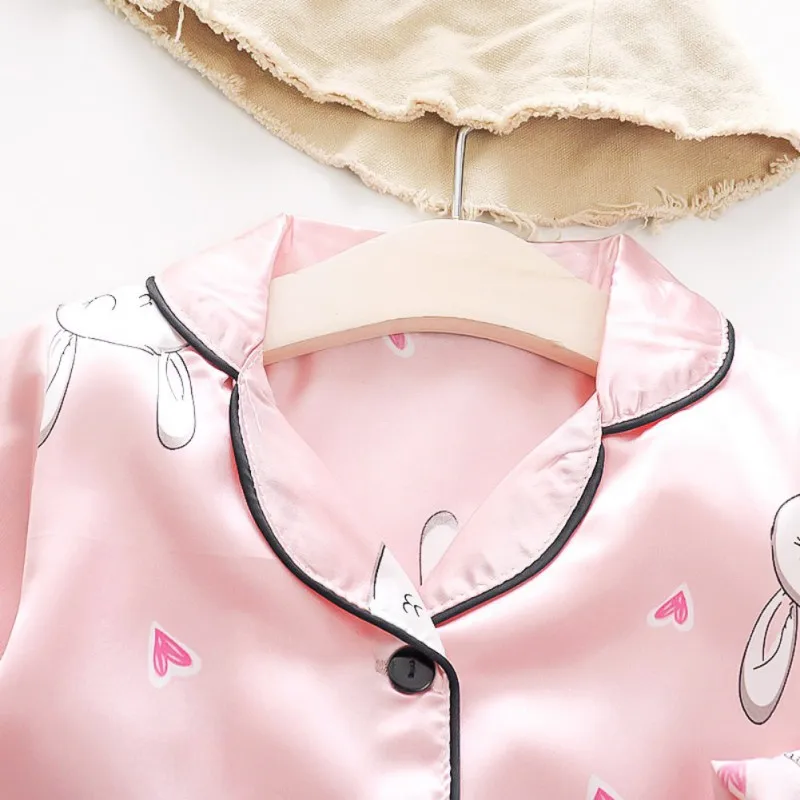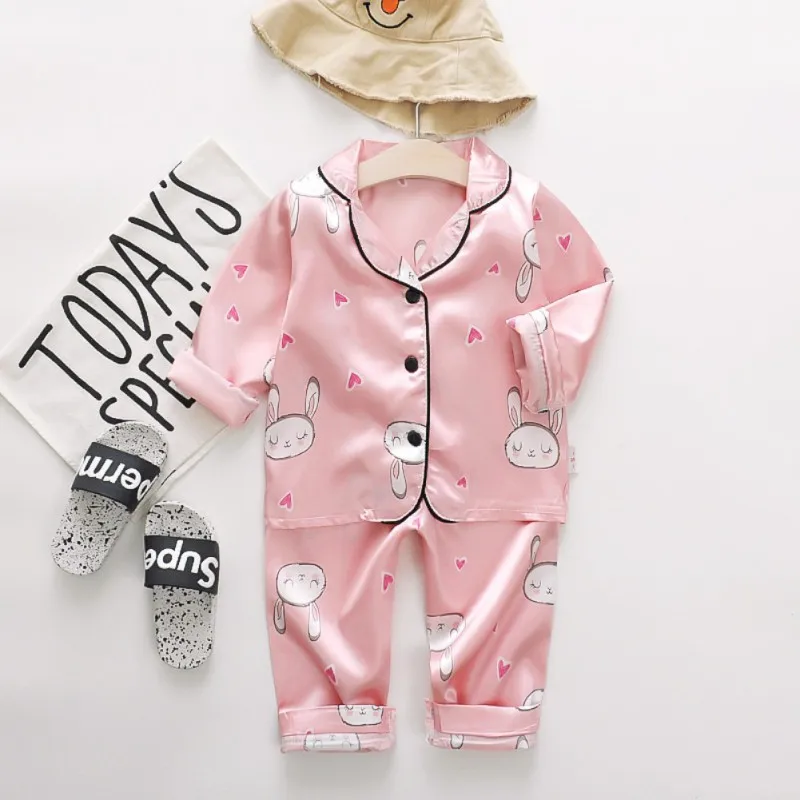 A classic satin PJ set with an adorable cartoon print will have your little ones heading to bed with sweet dreams.  Featuring a silky smooth, satin construction with a fun cartoon print throughout. This set includes a long sleeve shirt and matching PJ pants with an elasticated waistband.
