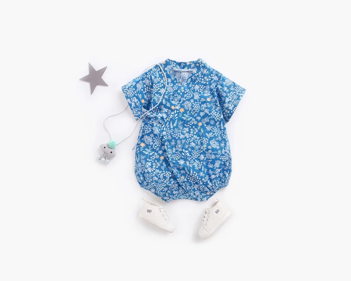 A lovely option for your little one. This kimono romper makes dressing your baby easy by avoiding having to pull garments over the baby's head. It is made of soft cotton and polyester materials to make your little one comfortable.