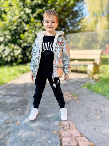 Keep your kids toasty warm and look stylish in a shimmering metallic style winter hooded padded jacket. Featuring hood and closure zip on the front. It is made from thick and soft fabric which is perfect for winters. A hooded puffer jacket to keep your little cozy and warm from breezy days.