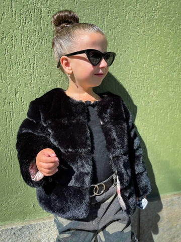 Keep warm this winter in the Stylish Faux Fur Coat. A luxurious and ethical alternative to real fur. Made from our exclusive 100% Recycled faux fur which is as soft as the real thing. Inspired by their signature leather jackets. This faux fur style has an o-neck collar. Pair yours with a dress and ankle boots!