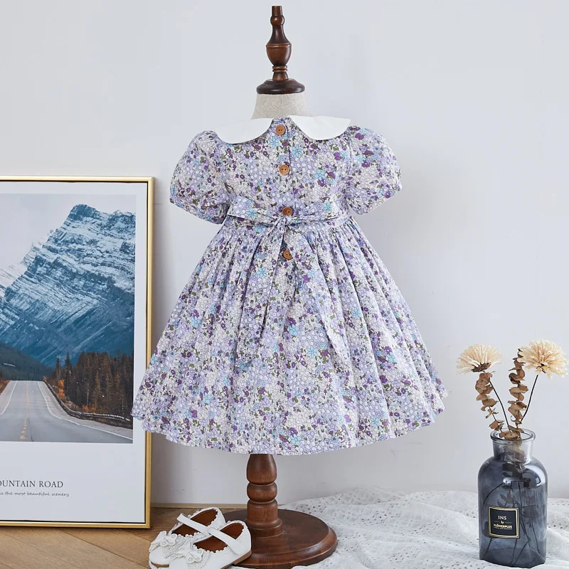 Nothing ignites the imagination like swinging on the swing under the tree with the smell of candyfloss. A beautiful floral dress just for lovely little girls. This dress has smock details at the front. It is made of soft fabric and lightweight materials. Ideal for birthdays, parties, Christmas, or any special event.
